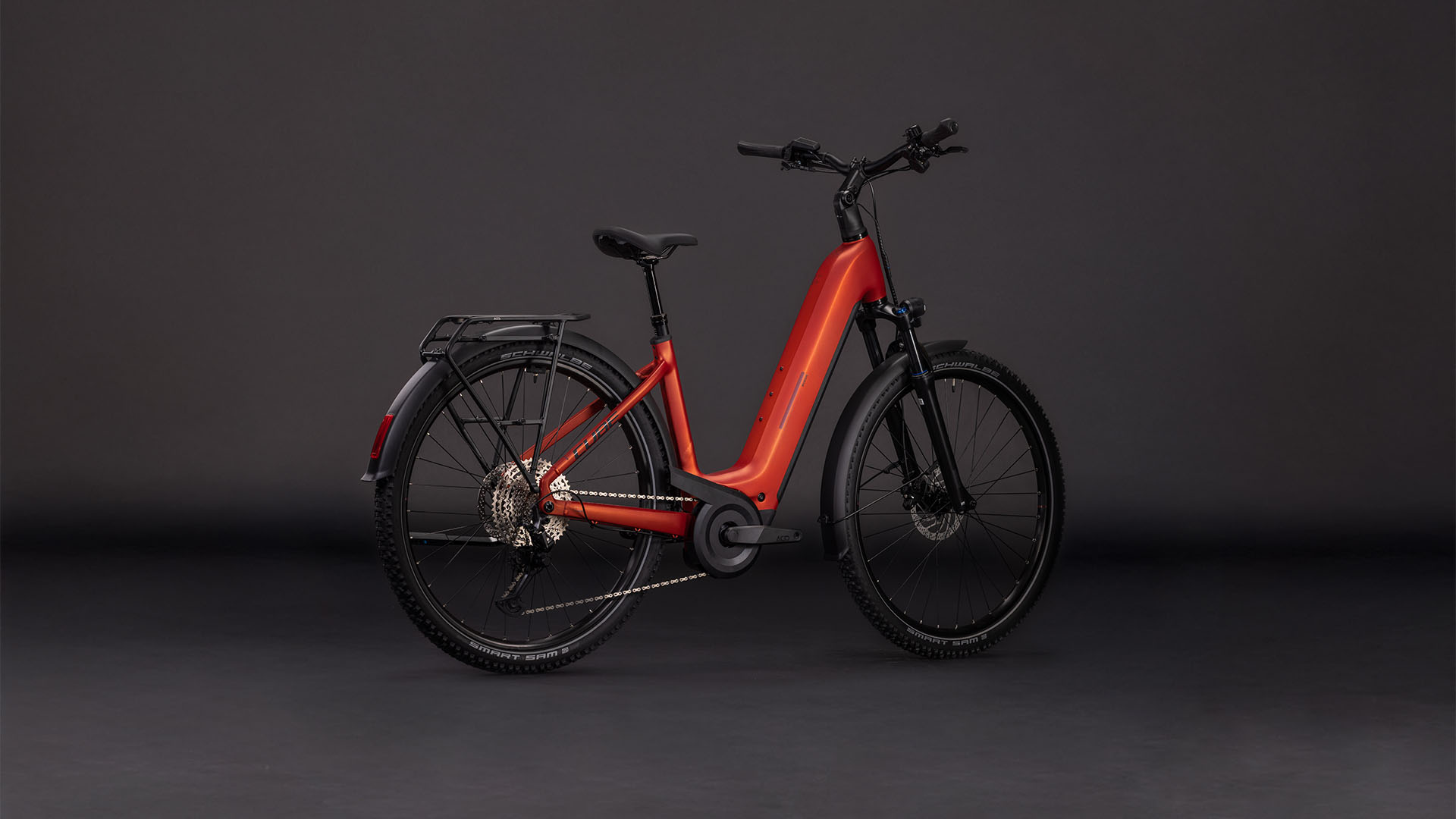 Der Tiefeinsteiger-Rahmen des Nuride Hybrid hält, was sein Name verspricht – einfaches, unkompliziertes Auf- und Absteigen sind damit fix inklusive. Doch da ist noch mehr: Neben einer Federgabel mit 100 mm Federweg für ein Plus an Fahrkomfort und Kontrolle haben wir das Chassis mit großzügiger Reifenfreiheit (sogar inklusive der mitgelieferten Schutzbleche) ausgestattet. Im Inneren verlaufende Züge unterstreichen die cleane Optik. Ebenso harmonisch ins Rahmendesign integriert sind der Bosch CX Antrieb und der 800 Wh PowerTube Akku. On top gibt's einen integrierten Kettenschutz, serienmäßig verbaute Schutzbleche, Lichter, einen Seitenständer und unseren stabilen semi-integrierten Gepäckträger 2.0. Da kann das nächste Zweiradabenteuer direkt losgehen, oder?