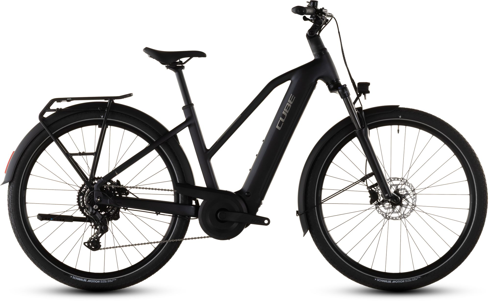 Auf den ersten Blick sieht der Touring Hybrid Rahmen vielleicht unspektakulär aus, doch wer genau schaut, wird von seiner Ästhetik und Detailverliebtheit und damit dem tollen Handling begeistert sein. Zum einen ist da der ebenso stabile wie stylishe integrierte Gepäckträger 2.0, auf dem alles Platz findet, was auf Tour mit muss. Auch der leistungsstarke Bosch Performance Motor fügt sich samt 600 Wh PowerTube Akku so formschön ins Design ein, dass er kaum auffällt. Was aber natürlich auffällt, ist der tolle Support im Vorwärts! Für ein komfortables und zugleich kontrolliertes Fahrgefühl, selbst auf holprigen Strecken, sind unsere Efficient Comfort Geometry und die Federgabel mit ihren 100 mm Federweg zuständig. Was noch? Ein ACID Kettenschutz, ein Seitenständer, Schutzbleche und Lichter.