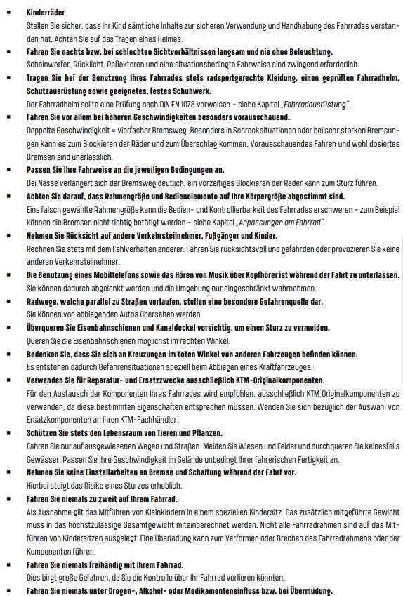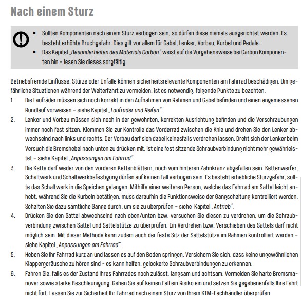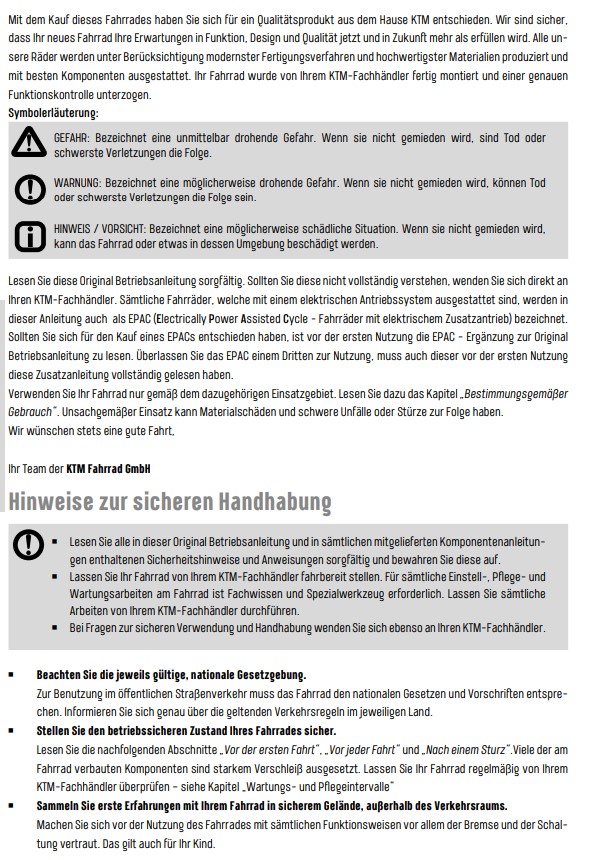 Nichtbeachtung der Betriebsanleitung kann zu gefährlichen Fahrsituationen, Stürzen, Unfällen und Sachschäden führen.